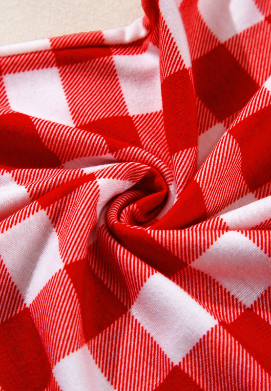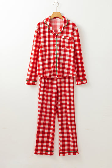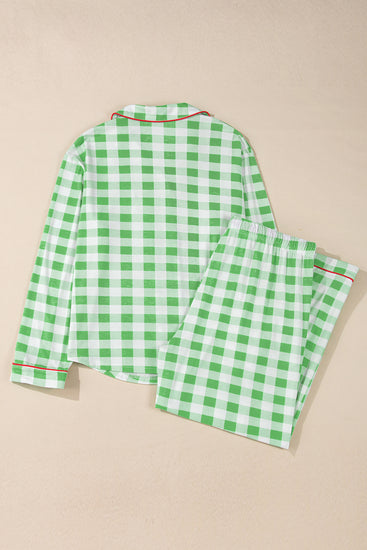 Plaid Collared Neck Long Sleeve Top and Pants Set